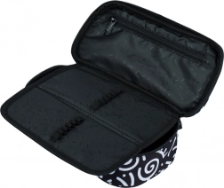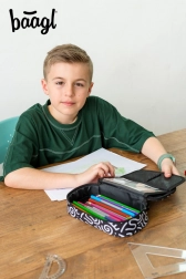 Penal se ponosi crno-bijelim tekstilnim izgledom s apstraktnim uzorcima i natpisom 'Baagl'. Njegov stilski dizajn je idealan za one koji paze na modu čak i u školskim potrepštinama.
