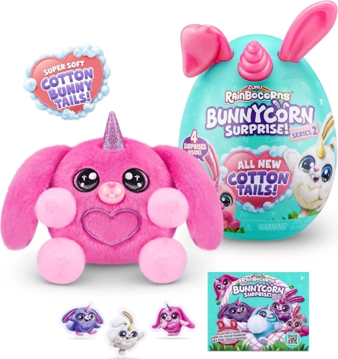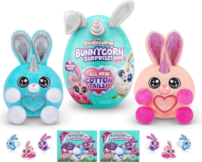 Mali, ali čaroban – Boo‑Boocorn zeko iz linije RAINBOCORNS donosi djeci radost iznenađenja i mekog maženja. U svakom jajetu nalazi se plišani zeko sa sjajnim uškama, pahuljastim repićem i drugim sitnim dodacima za igru i skupljanje.