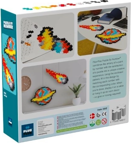 Set Plus-Plus Slagalica po brojevima – Svemir donosi pametan način povezivanja kreativne gradnje s učenjem. Djeca prema priloženom predlošku pridružuju boje brojevima i korak po korak slažu dojmljivu svemirsku mozaiku planeta i kometa. Gotova kreacija odlično pristaje kao dekoracija sobe.