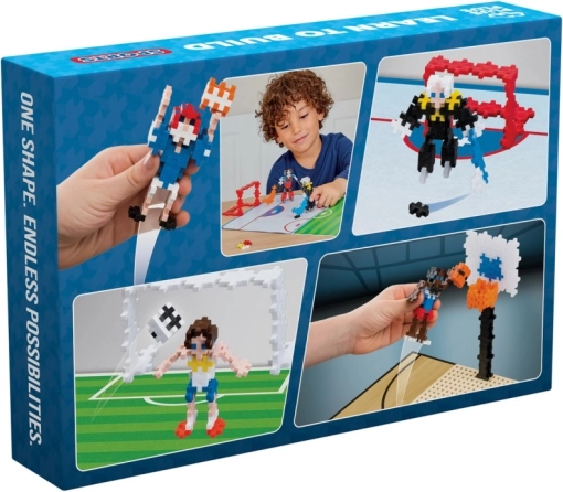 Plus-Plus Nauči se graditi – Sporty je zabavan i edukativan set za slaganje s kojim djeca lako stvaraju sportske scene – igrače, golove, lopte i cijelo igralište. Dijelovi se jednostavno spajaju, čvrsto drže zajedno i omogućuju 2D i 3D slaganje.