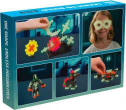 Set za slaganje Plus-Plus Nauči se graditi Svijetli u mraku donosi jedinstvenu povezanost igre i učenja. Zahvaljujući 500 dijelova, od kojih 140 svijetli u polumraku, djeca mogu složiti duhove, šišmiše ili figurice te pritom razvijati kreativnost i prostornu maštu. Jednostavan oblik dijelova omogućuje lako povezivanje u 2D i 3D modele.