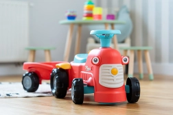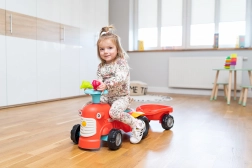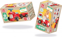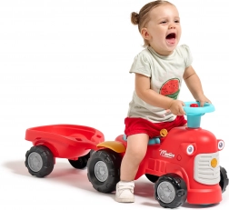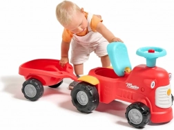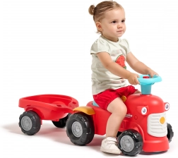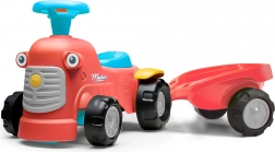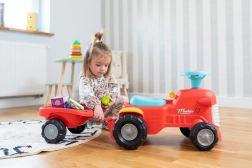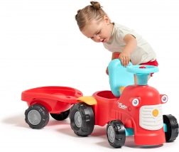 Ova crvena dječja guralica u obliku traktora s odvojivom prikolicom idealno je prvo vozilo za mališane. Zahvaljujući stabilnoj konstrukciji i maksimalnom opterećenju 25 kg vožnja je sigurna i udobna. Okretna prednja osovina olakšava skretanje, dok truba na upravljaču dodaje dozu zabave tijekom svake vožnje.