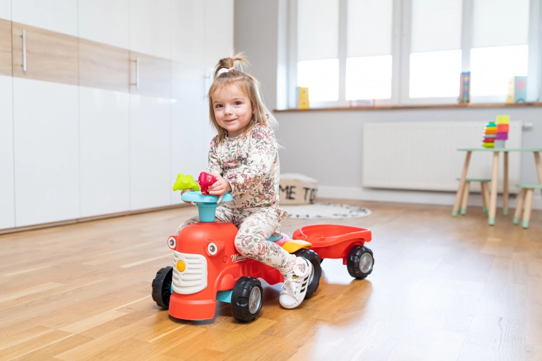 Zabavna i stabilna guralica u stilu traktora s prikolicom oduševit će male vozače od 12 mjeseci. Nudi sigurnu vožnju, izdržljive plastične kotače, okretnu prednju osovinu za lako upravljanje i trub... Prikaži više