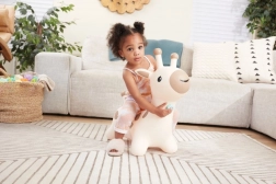 Vesela žirafa Jumper izrađena je od mekane gume na dodir, sigurne za dijete. Pritiskom na gumb aktiviraju se 3 melodije i 1 zvučni efekt. Skakalište može biti i igračka i gimnastički rekvizit. Pumpica je uključena u pakiranje.
