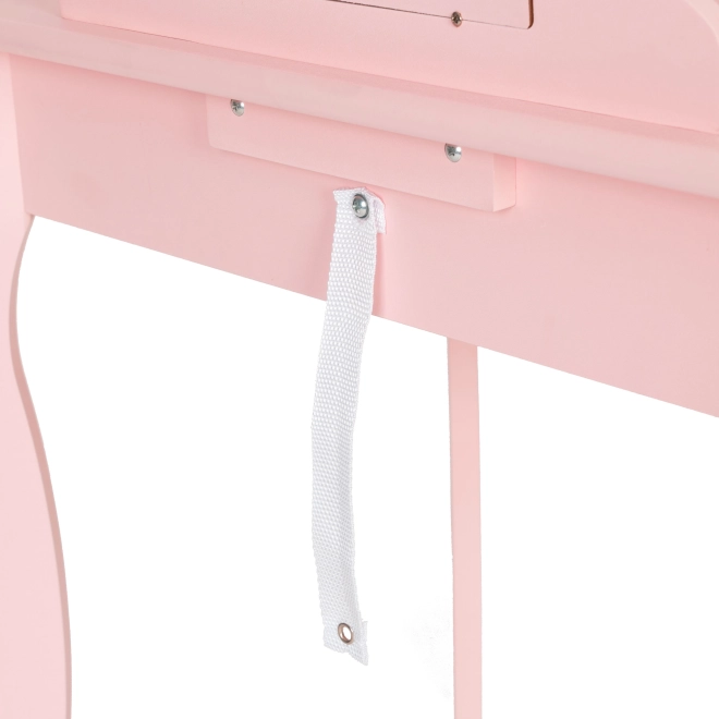Uljepšajte dječju sobu stilskim toaletnim stolićem ECOTOYS u ružičastoj boji. Nudi veliko zrcalo s dekorativnim okvirom, prostranu ladicu za dodatke i udobnu, stabilnu stolicu. Zahvaljujući drvenoj konstrukciji izdržljiv je i siguran, lako se sklapa i može se pričvrstiti na zid za maksimalnu stabilnost.
