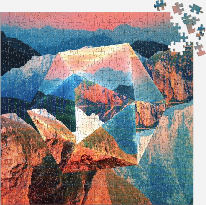 Puzzle nudi jedinstveni dizajn s geometrijskim oblicima planina i prizmatičnim efektima. Idealno za svakoga tko želi spojiti zabavu s umjetničkim izazovom.
