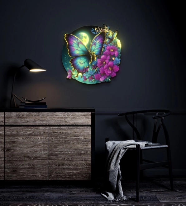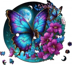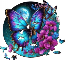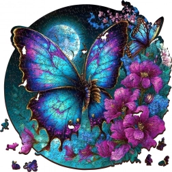 Ove okrugle drvene puzzle s dojmljivim motivom plavo-ljubičastog leptira donose savršeno oštre boje zahvaljujući UV digitalnom tisku i pažljivoj izradi. Svaki je dio jedinstven, gladak na dodir i precizno pristaje, što osigurava ugodno i fluidno slaganje. S promjerom od 42 cm gotove puzzle postaju maštovita zidna dekoracija.