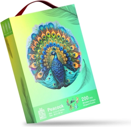 Uživajte u jedinstvenom doživljaju drvene puzzle s motivom pauna! Svaki od 200 dijelova je precizno izrezan laserom, osiguravajući savršenu preciznost i glatkoću. Zahvaljujući modernoj tehnologiji UV digitalnog tiska, puzzle donosi realistične i živopisne boje u svaki komad.