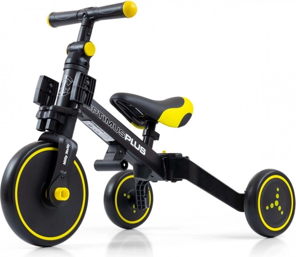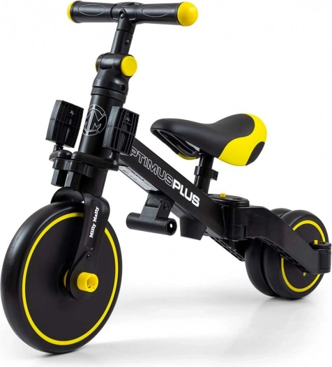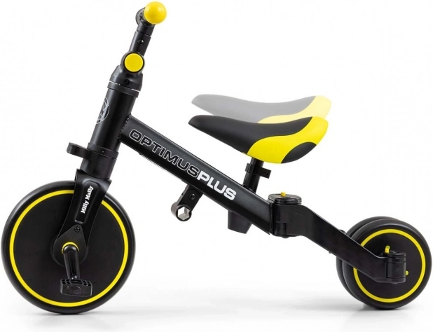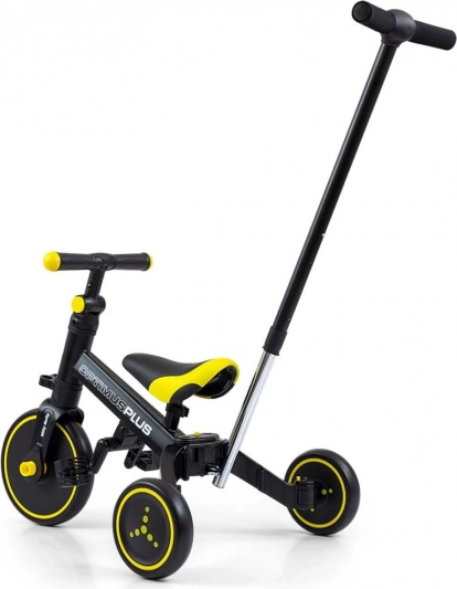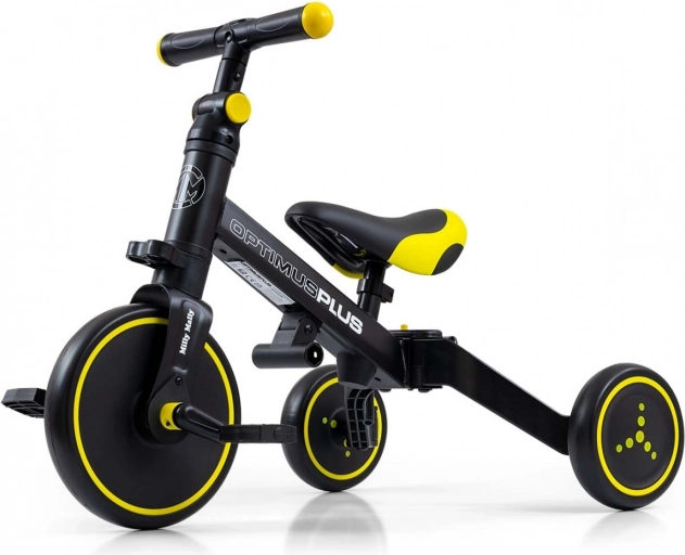 Bicikl Optimus Plus dizajniran je da postane jedan od najboljih izbora za prvo vozilo vašeg djeteta. Zahvaljujući stabilnoj konstrukciji s tri kotača pruža djetetu odgovarajuću razinu sigurnosti i olakšava učenje novih vještina. Kada vaše dijete savlada osnove vožnje i više ne treba pomoć roditelja pri upravljanju ručkom za vođenje, možemo ga nadopuniti pedalama ili pretvoriti u klasični balans bicikl.