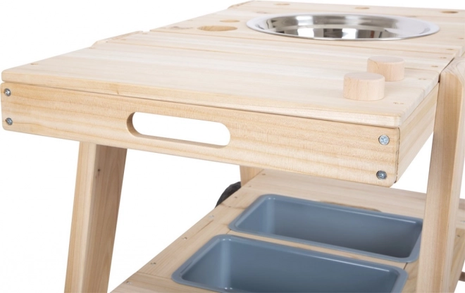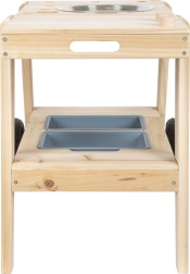 Dvije izvadive posude i inox sudoper pozivaju na miješanje, zahvaćanje i “kuhanje”. Idealan je izbor umjesto pješčanika za razvoj osjetila i mašte.