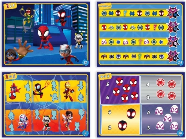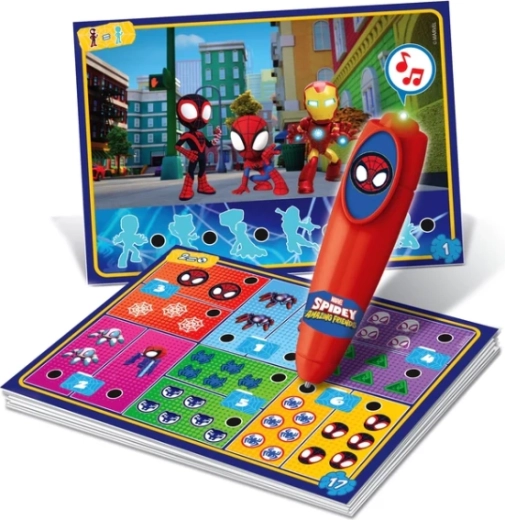 Zabavna edukativna igra s junacima MARVEL Spidey iz Disney Juniora donosi djeci od 3 do 6 godina više od 200 kviz zadataka s interaktivnom elektroničkom olovkom. Djeca uče boje, oblike, brojeve, količine i snalaženje u prostoru, pri čemu olovka pri točnom odgovoru svijetli i ispušta zvuk. Podržava samostalno učenje, koncentraciju, zapažanje i logičko razmišljanje.