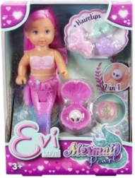 Lutka Evi kao biserna morska vila očarat će djecu svojim ljubičastim ribljim repom i dugom ružičastom kosom koju je moguće uređivati pomoću priloženih ukosnica u obliku oblačića, duge i jednoroga. Dio seta je i magična perla, koju se može umetnuti u dječji prsten i pretvoriti u čaroban ukras.