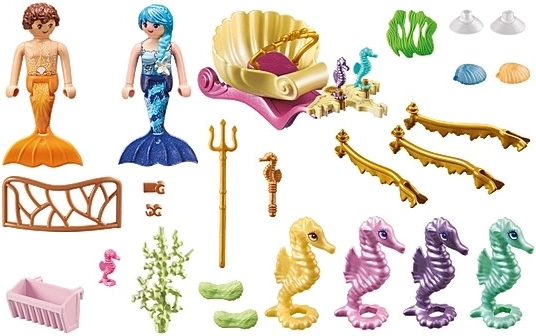 Zaronite u dubine oceana i doživite maštu punim plućima. Ovaj detaljno izrađen set donosi sjajnu podmorsku kočiju, četiri velike morske konjice i dvije figurice morskih vila. Serija PLAYMOBIL Princess Magic potiče kreativnu igru i pripovijedanje vlastitih priča za djecu od 4 godine.
