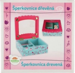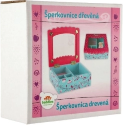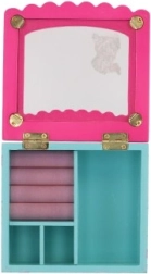 Stilna drvena kutija za nakit za male dame i odrasle oduševit će svojom tirkizno‑ružičastom kombinacijom, cvjetnim motivom i praktičnim ogledalom ispod poklopca. Nudi pregledne pretince za nakit i sitnice, a zahvaljujući kompaktnoj veličini stane na svaki toaletni stolić ili u dječju sobu.