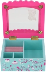 Iznutra ćete naći praktično raspoređene pretince koji drže nakit odvojenim i zaštićenim. Zahvaljujući čvrstoj drvenoj izradi i pouzdanim šarkama, kutija za nakit nije samo lijepa, već i izdržljiva za svakodnevnu upotrebu. Maštovit dizajn prikladan je kao poklon ambalaža i kao dekoracija za dječju sobu.