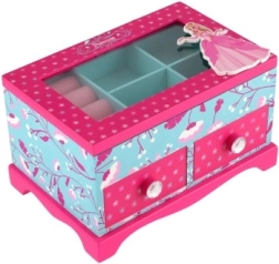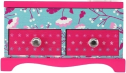 Površinu kutije krase nježni cvjetni i ptičji motivi u kombinaciji ružičaste i tirkizno plave boje, koji lijepo upotpunjuju svaku dječju sobu. Zahvaljujući čvrstoj drvenoj izradi i glatkim ručkicama, djeci je njome lako rukovati. Nije igračka – prikladno kao dekorativni i spremišni predmet.
