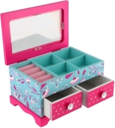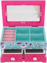 Gornji dio s ogledalcem i podijeljenim pretincima plus dvije prostrane ladice drže nakit i sitnice pregledno na svom mjestu.
