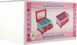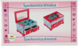Ova stilska drvena kutija za nakit spaja privlačan izgled i funkcionalan raspored. Gornji poklopac s ogledalcem lako se podiže i otkriva promišljene pretince za prstenje, naušnice i male dodatke. Dvije odvojene ladice pružaju dodatni prostor za pregledno odlaganje dragocjenosti.