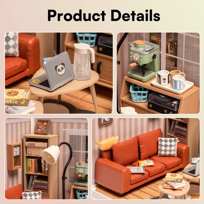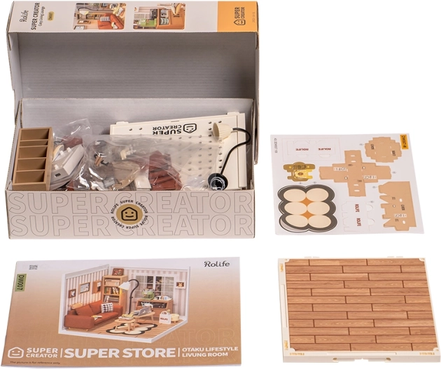Ova kreativna maketa donosi realistično oblikovan interijer sa sofom, knjižnicom, klub-stolićem i podnom lampom. Nakon slaganja poslužit će kao stylish dekoracija za radnu sobu, dnevni boravak ili dječju sobu. LED svjetlo stvara ugodnu atmosferu i ističe precizne detalje.