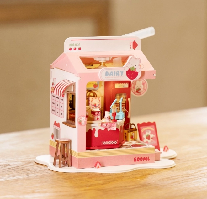 Sastavite preslatki Mliječni bar Strawberry marke Robotime i ukrasite svoju sobu originalnom minijaturom. Set nudi detaljnu izradu, LED osvjetljenje i ugodno iskustvo sastavljanja za otprilike 90 minuta. U pakiranju se nalazi kompletna oprema uključujući ljepilo i alate – trebaju vam samo vlastite škare. Idealno za kreativni odmor i kao poklon ljubiteljima minijatura.