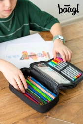 Tražite pouzdanu i elegantnu pernicu koja će sve držati uredno i pregledno? BAAGL Darkness spaja minimalistički dizajn s promišljenom unutarnjom organizacijom. Preklopna pregrada, elastični držači i džep na patentni zatvarač osiguravaju red u olovkama, kemijskim olovkama i sitnim dodacima. Prozirni džep za raspored pomaže bolje planirati školski dan.