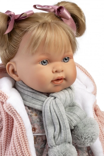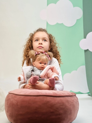 Otkrijte čaroliju igre s lutkom Llorens Alexandra koja ima realističnu kosu po cijeloj glavi, mekano tekstilno tijelo i omekšani vinil na glavi i udovima. Nakon vađenja dudu varalice nježno izgovara „mama“, „tata“ i ispušta realističan zvuk plača, koji lako smirite magnetnom dudu varalicom. Ručna izrada u Španjolskoj i poklon pakiranje čine je savršenim darom.