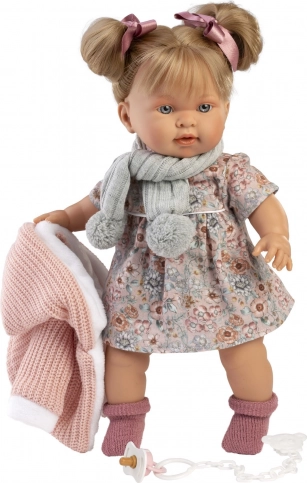 Lutka je obučena u usklađenu odjeću s kaputićem, šalom i dudu varalicom na klipsi. Mogu se dodatno kupiti originalni kompleti odjeće Llorens za veličinu 42 cm.