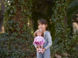 Preslatka lutka Elena visine 35 cm brenda Llorens oduševljava realističnim detaljima i kvalitetnom ručnom izradom iz Španjolske. Ima nježno oblikovano lice, duge trepavice i prekrasne oči. Odjeća je šivana od organskog pamuka, vune i recikliranih materijala. Sjajan poklon za djecu za razvoj mašte i nježne brige.