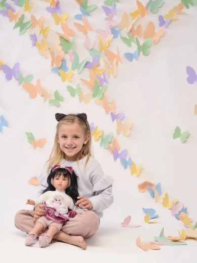 Preslatka lutka Greta visine 40 cm iz radionice Llorens očarava realističnim detaljima i kvalitetnom izradom. Ima nježno modelirane crte, prekrasne trepavice i oči te je odjevena u stylish odjevni komplet od ugodnih materijala. Ručna izrada u Španjolskoj jamči preciznu kvalitetu i dug vijek trajanja. Idealan poklon za poticanje mašte i osjećaja svakog djeteta.