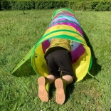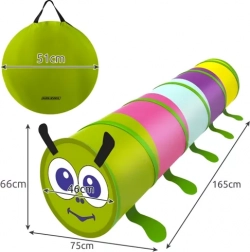 Presladak dječji tunel u obliku gusjenice oduševit će male istraživače. Dva ulaza/izlaza i mekana tekstilna konstrukcija pozivaju na skrivača, provlačenje i utrke. Zahvaljujući elastičnom čeličnom okviru tunel se sam rasklopi, a nakon igre ga lako složite natrag u kompaktno pakiranje.