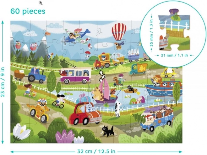 Otkrijte svijet seoskog prometa s dječjom slagalicom DODO, koja razvija strpljenje, logiku i finu motoriku. Ilustrirana scena prepuna detalja zabavit će djecu i potaknuti ih na ponovno slaganje.
