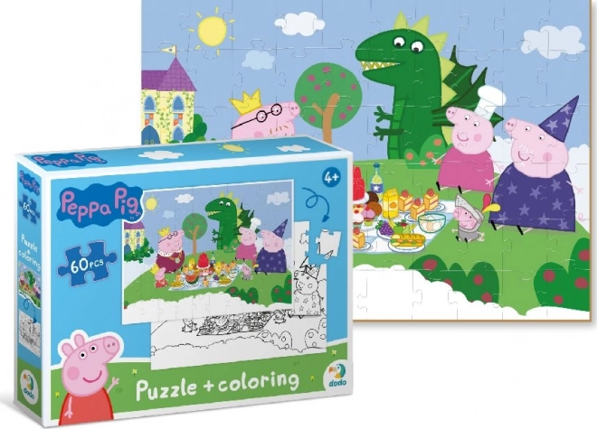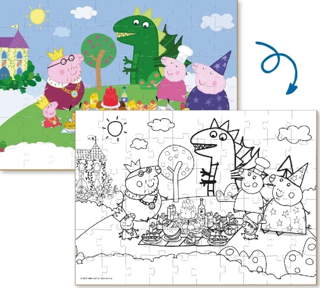 Ova dvostrana slagalica donosi djeci dvostruku dozu zabave. Najprije slože veseli motiv s omiljenim likovima iz svijeta Peppa Pig, a zatim mogu drugu, crno-bijelu stranu po dovršetku obojiti prema vlastitoj mašti. Složena slika ima dimenzije približno 32 × 23 cm, pa se udobno uklapa na dječji stolić.