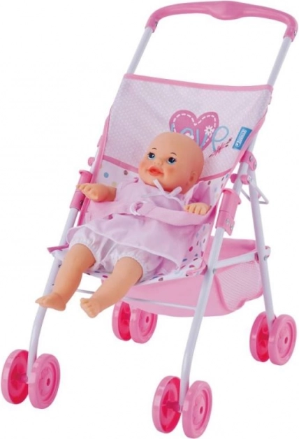 Kolica su lagana i jednostavna za nošenje, s ružičastim kotačima i sjedalom posutim točkicama i srčekima. Idealna za igru i u zatvorenom i na otvorenom.