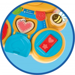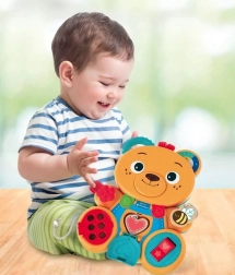 Zabavni i šareni medić marke CLEMENTONI potiče kod djece od 12 mjeseci razvoj fine motorike, koncentracije i osjetilnog opažanja. Razvijen je u skladu s Montessori metodom i nudi niz aktivnosti, kao što su prstenovi za provlačenje s uzicom, prekidač koji klika, umetanje srčeka, vratanca na otvaranje i okretno uho. Kombinira meke i čvrste elemente, uključujući drvene komponente za raznolik i siguran razvoj.