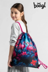 Stilska vrećica s motivom plamingosa od Baagla idealna je za obuću i sitnice za slobodno vrijeme. Nudi čvrst, periv materijal, praktičnu karabiner kopču za pričvršćivanje na školsku torbu te zatvaranje pomoću čvrstih uzica koje omogućuju udobno nošenje na leđima.