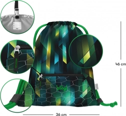 Praktična školska vrećica za obuću i slobodno vrijeme s motivom Nogometaš. Nudi čvrst, periv materijal, praktičan džep na patent u donjem dijelu, karabiner za pričvršćivanje na torbu i udobno nošenje na leđima zahvaljujući čvrstim vezicama.