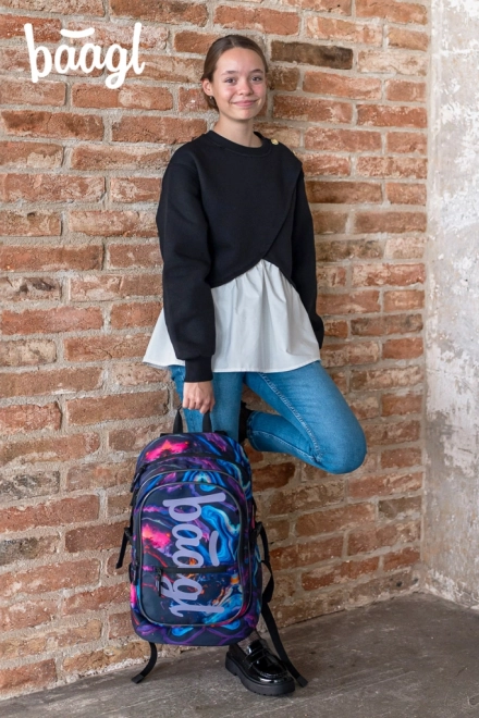 Školski set Baagl Core Marble spaja funkcionalnost i upečatljiv mramorni dizajn. Ergonomski ruksak s tri komore primi sve od udžbenika do 15" prijenosnog računala, pernica s preklopnom pregradom održava red u školskom priboru, a izdržljivi vrećasti ruksak sa zatezanjem spreman je za obuću i aktivnosti.