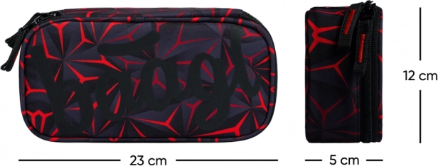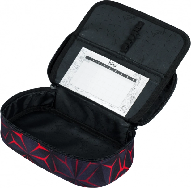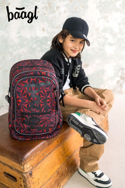 Kompletan školski set BAAGL Core Red Polygon u modernom crno-crvenom poligonalnom dizajnu idealan je za svaki školski dan. Ruksak težak samo 900 g čuva leđa, a pritom nudi promišljenu organizaciju uključujući džep za 15" prijenosno računalo ili tablet i bočne džepove za bocu. Pernica etui drži formu, ima preklopnu pregradu i džep za raspored, a vrećica sa zatezanjem na uzice poslužit će za papuče, tjelesni ili slobodno vrijeme.