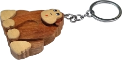 Otkrijte prirodnu ljepotu s drvenim privjeskom za ključeve u obliku majmuna, ručno izrađenim od čak pet vrsta drva: žutog kruhovca, svjetlosmeđeg tamarinda manilskog, tamnosmeđe kasije obične, ružičaste anibe i bijele gmeline arboree. Ručno doslikano, samo drvo ima prirodnu, neobojenu boju.