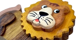 Ovaj ručno izrađen drveni privjesak za ključeve u obliku lava postat će ukras vaših ključeva, torbica ili ruksaka. Proizvod je izrađen od čak pet vrsta prirodnog drva: žuti kruhovac s promjenjivim listom, svjetlosmeđi tamarind manilski, tamnosmeđa kasija obična, ružičasta aniba i bijela gmelina arborea. Drvo nije bojano, ostavljeno je u prirodnom izgledu, a cjelokupni dizajn upotpunjen je ručnim oslikavanjem.