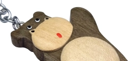 Drveni privjesak za ključeve - Veliki Nilskog konja savršen je izbor za svakog ljubitelja prirode i životinja. S ovim privjeskom uvijek možete imati djelić prirode uz sebe. Privjesak je ručno izrađen od pet vrsta drva: žutog kruškolikog drveta, svijetlosmeđeg tamarinda manilskog, tamnosmeđe kasije obične, ružičaste anibe i bijele gmelinije arborea. Zahvaljujući prirodnoj boji drva bez bojanja i ručnom doslikavanju djeluje autentično i originalno.