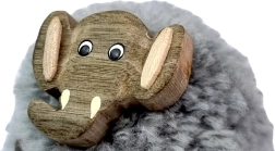 Ovaj jedinstveni dekorativni element donosi harmoniju u svaki prostor zahvaljujući kombinaciji drvenih elemenata i mekog tekstilnog tijela. Idealan je za ljubitelje prirode i životinja koji cijene vještu izradu i prirodnu ljepotu. Slon je ručno izrađen i složen od pet vrsta prirodnog drva, koje nije bojano već zadržava svoje izvorne nijanse.