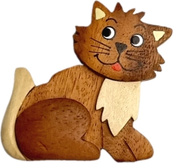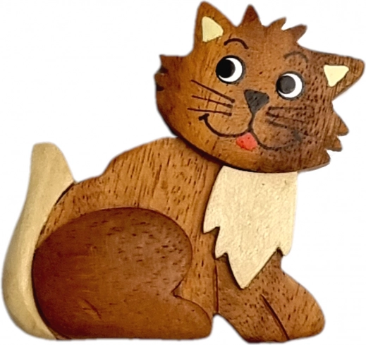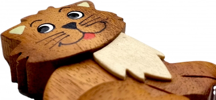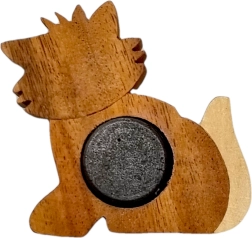Originalna drvena magnetna u obliku mačke izrađuje se i oslikava ručno, zbog čega je svaki komad jedinstven. Kombinacija raznobojnih vrsta drva naglašava prirodnu ljepotu materijala i daje magnetnoj topli, prirodni izgled.