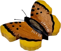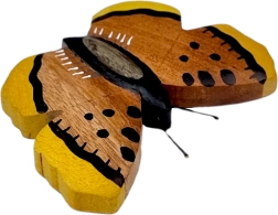 Unesite dašak prirode u dom s drvenim magnetom u obliku leptira. Svaki je komad ručno izrađen i oslikan, pri čemu se paleta boja temelji na kombinaciji do pet vrsta drva – od svijetle gmeline preko žutog kruhovca do tamnije kasije. Rezultat je autentičan izgled s nježnom strukturom drva.