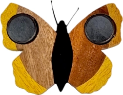 Ručna izrada, prirodni materijali i prekrasan motiv leptira – ovaj drveni magnet ukrasit će svaki hladnjak i magnetsku ploču. Sastavljen je od čak pet vrsta drva i samo je ručno dorađen, pa dolaze do izražaja njegove prirodne boje, precizna izrada i originalan dizajn. Sjajan dekorativni element i mali poklon za ljubitelje prirode.