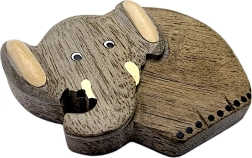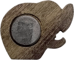 Ova stilska magnetna figurica slona ručno je izrađena od kombinacije različitih egzotičnih drva čiji prirodni tonovi stvaraju jedinstven mozaik izgled. Drvo nije bojano – samo je blago dotcrtano radi naglašavanja detalja, tako da ćete uživati u njegovoj autentičnoj prirodnoj teksturi i boji.