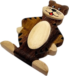 Preslatka drvena magnetna figurica u obliku tigra uljepšat će svaki hladnjak ili magnetsku ploču. Ručno je izrađena od čak pet vrsta prirodnog drva i samo ručno dotjerana bojom – bez kemijskog bojanja. Sjajan dekorativni detalj i mali poklon za ljubitelje životinja i prirode.