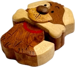Ova velika drvena magnetna figurica s motivom psa s kosti spaja kvalitetno umijeće i prirodne materijale. Svaki komad pažljivo je složen od raznobojnih vrsta drva i samo ručno doslikan – bez površinskog bojanja, kako bi došla do izražaja prirodna struktura drva.