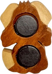 Preslatka drvena magnetna figurica u obliku psa s kosti uljepšat će svaki hladnjak ili ploču. Nastaje ručnom izradom od do pet vrsta prirodno obojenog drva, pa je svaki komad original. Zahvaljujući snažnim magnetima pouzdano drži poruke ili dječje crteže. Sjajan prijedlog za dekoraciju, ručnu izradu i poklon za ljubitelje životinja.