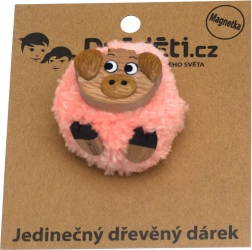 Preslatka drvena magnetna u obliku prasića s mekim pomponom uljepšat će svaku hladnjak ili magnetsku ploču. Ručno je izrađena od čak pet vrsta prirodno obojenog drva, pa je svaki komad original. Prirodni materijali, ručna izrada i šarmantan životinjski motiv čine je izvrsnim dekorativnim elementom i sitnim poklonom za ljubitelje životinja.